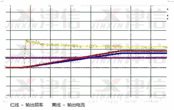 變頻器和電機參數(shù)設置完成后,開機啟動,下圖是加速時的轉速電流波型曲線,可以看出,電機加速及運行平穩(wěn),電流輸出正常。