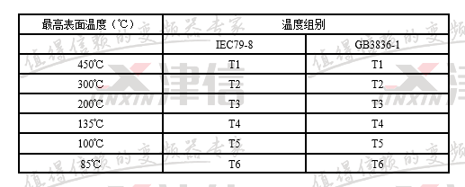這是與氣體點(diǎn)燃溫度有關(guān)的電氣設(shè)備(假定環(huán)境溫度為40℃時(shí))的最高表面溫度,點(diǎn)燃能量與點(diǎn)燃溫度無(wú)關(guān)。在標(biāo)準(zhǔn)BS5345第一部分中列出了所有可燃性氣體和其組別。