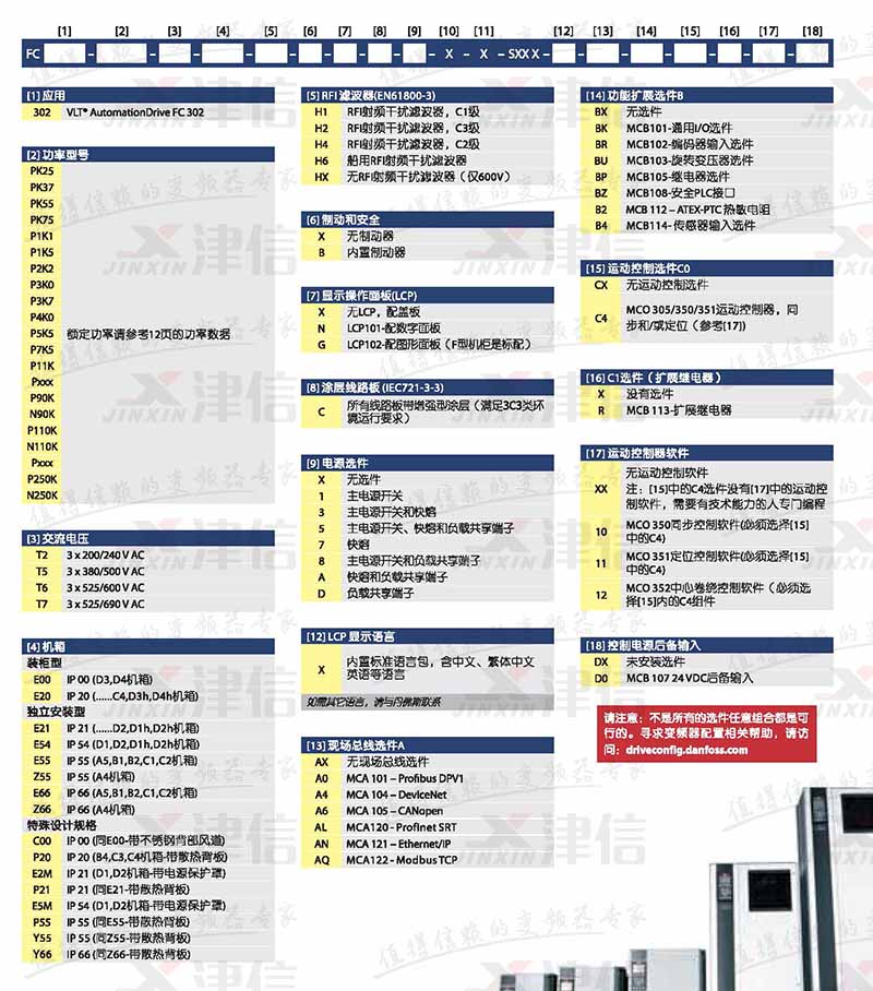 可以根據(jù)不同的功率和選件來選型,如:FC302P3K0T5E20H1BXXXXXSXXXXAXBXCXXXXDX,