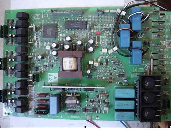由于這幾臺VLT3000變頻器是小功率的,因此拆裝非常的方便。先檢查變頻器的主回路,測量整流模塊和逆變模塊特性良好。給變頻器的輸入端送交流電,發(fā)現變頻器的操作面板沒有顯示。等變頻器主回路上直流電壓釋放完全后,將變頻器的上蓋板拆下,接下來就露出來變頻器的控制卡,拆除變頻器控制卡上的兩根電纜連接線,取出控制卡。變頻器ILD卡就出現在我們的面前。將變頻器的ILD卡取出來做單板測試,發(fā)現變頻器操作面板沒有顯示,確定變頻器的ILD卡損壞。