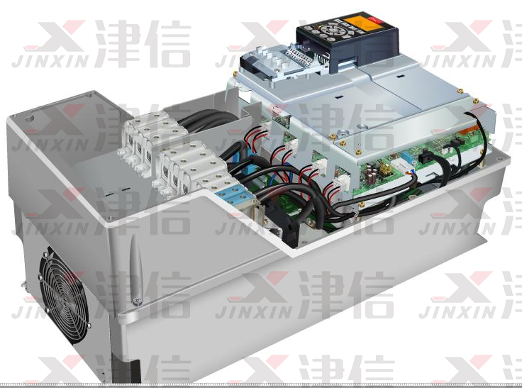 丹佛斯FC0302P37K5T5E55變頻器功率為37KW,封裝等級為I55,該機型拆裝比較簡單。根據(jù)客戶的反映情況,檢查該變頻器。先拆上蓋板,可以看到變頻器的全部概括(如下圖)。依次拆下變頻器的圖型面板、控制卡、后再拆固定板,可以把電源卡取下。測試電源卡整流模塊,逆變模塊,電解電容,全部正常。但是送電就顯示A33故障。