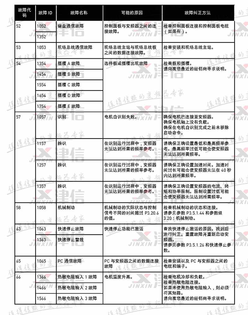 | 故障代碼 | 故障 ID | 故障名稱 | 可能的原因 | 故障糾正方法 |