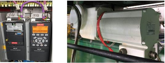 用兩臺Danfoss OGD電機替換原SSB Duradrive同步電機,用2臺FC302驅(qū)動器內(nèi)置MCA114 Profibus-DP通訊卡驅(qū)動兩臺OGD電機,替換原系統(tǒng)的VLT5000變頻器。