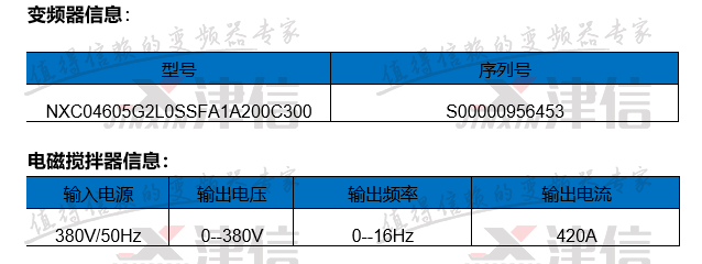 客戶公司原使用湖南某電氣公司提供的電磁攪拌逆變電源,因使用過程中經(jīng)常報警,現(xiàn)上海津信幫助客戶改用偉肯變頻器作為電磁攪拌的驅(qū)動裝置的方案。