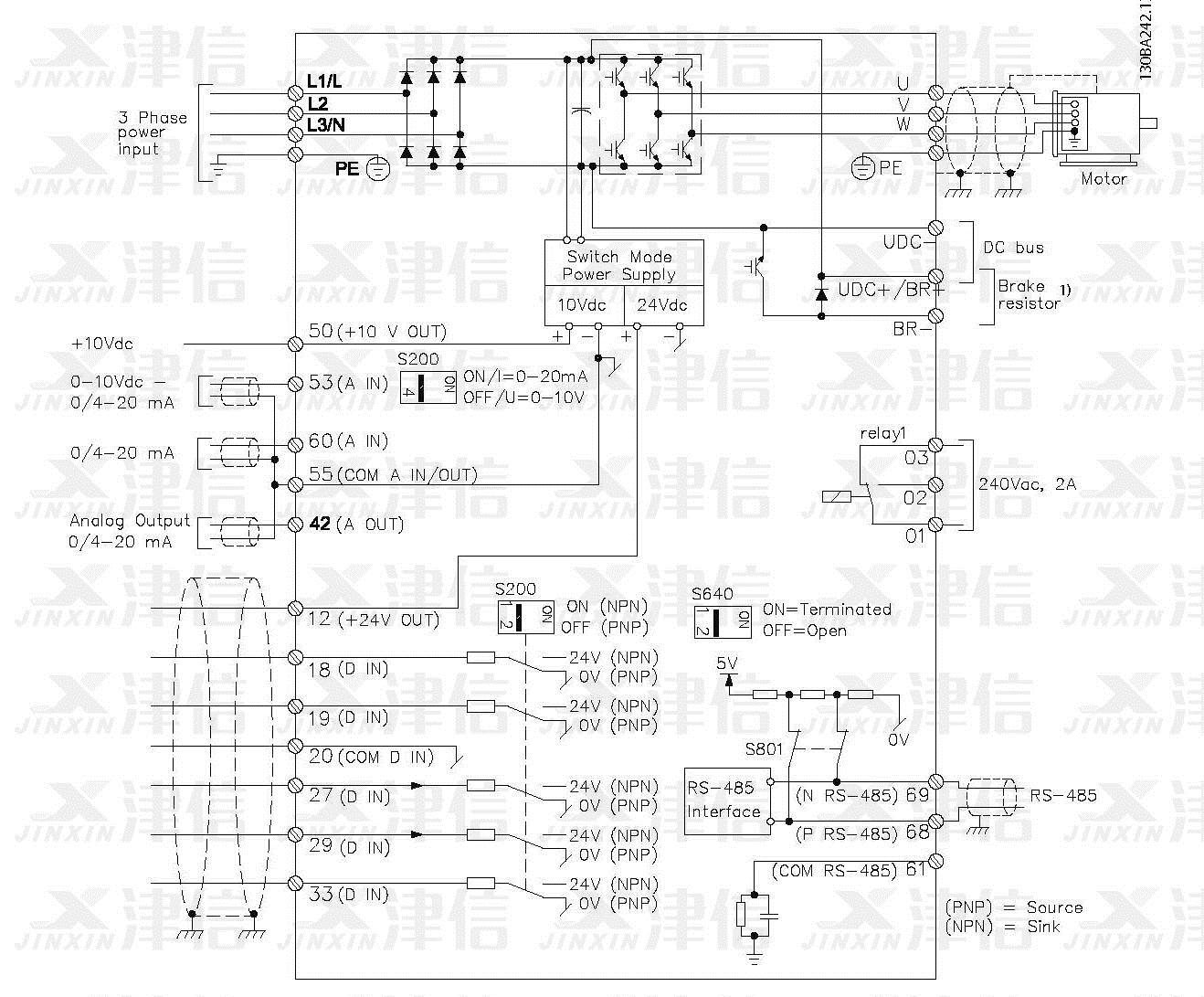 丹佛斯變頻器接線圖和接線端子說明
