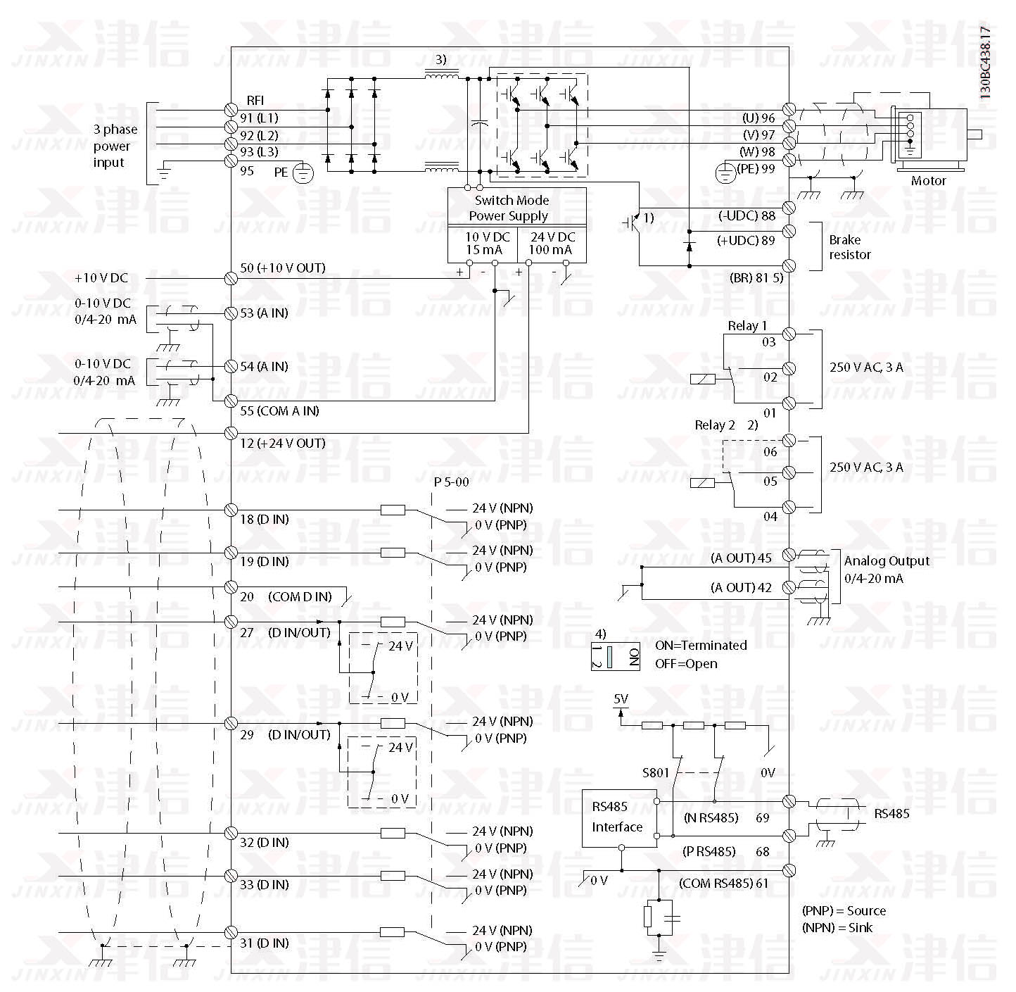 4) 開關(guān) S801(總線端子)可用于端接 RS485 端口(端子 68 和 69)。