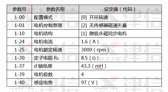 丹佛斯FC360系列變頻器可以為各種工業(yè)應用提供精確、有效的電機控制,并全面支持各類永磁同步電機。本案例中電機額定電流為1.6A,所以選擇0.75kW的變頻器已經(jīng)很充分了。變頻器使用VVCplus 控制模式,參數(shù)設置如下: