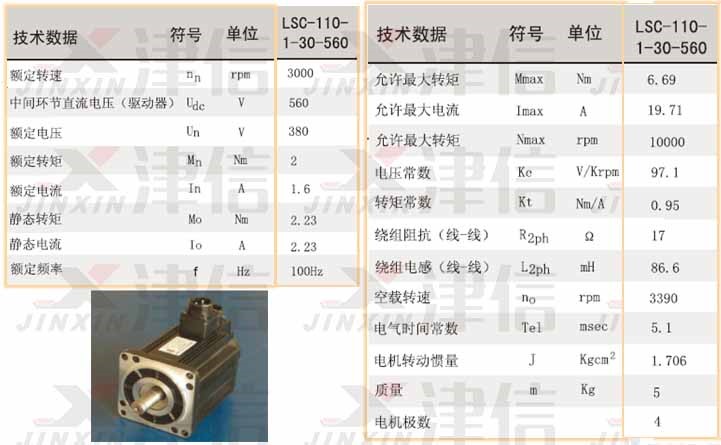 市場上有許多永磁同步電機的供應商,比如LUST、Phase、Lafert、中源等。以LUST永磁同步電機為例(型號:LSC-110-1-30-560),其具體參數(shù)如下: