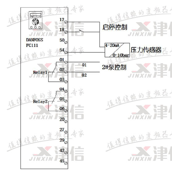 FC111 固定模式多泵控制中,變頻器直接控制變頻泵,其他泵的啟停由變頻器的數(shù)字量輸出信號控制,主要完成以下功能:
