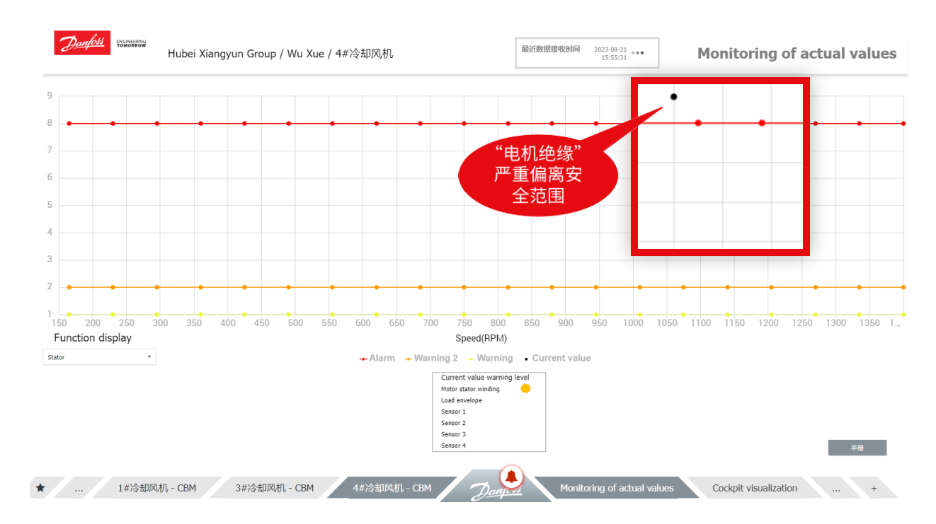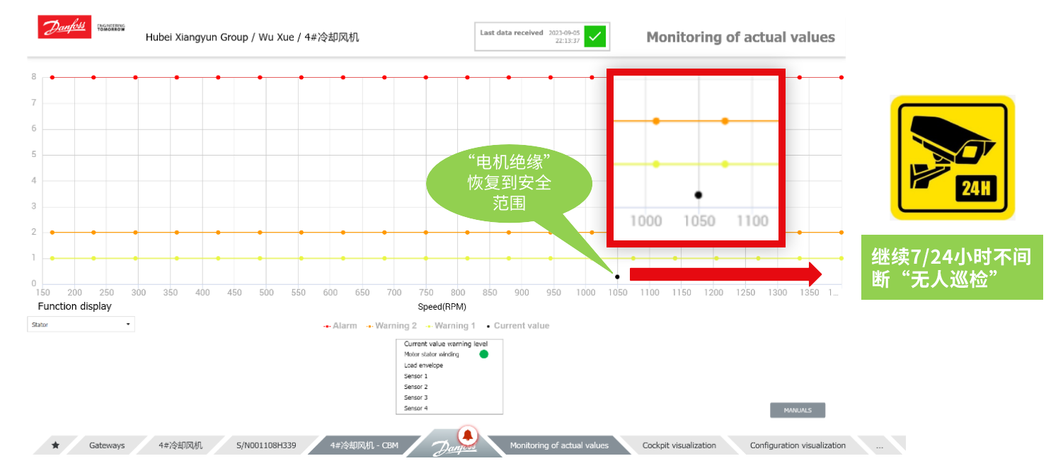 改造方案的目的是讓現(xiàn)場技術(shù)人員能夠?qū)ο到y(tǒng)進(jìn)行實(shí)時(shí)監(jiān)控,同時(shí)可以提前預(yù)警,防止非計(jì)劃停機(jī)。祥云化工最終同丹佛斯達(dá)成一致,合作開發(fā)數(shù)字化解決方案,增加丹管家+CBM(電機(jī)繞組絕緣,電機(jī)負(fù)載包絡(luò)),并于2021年年底正式上線。