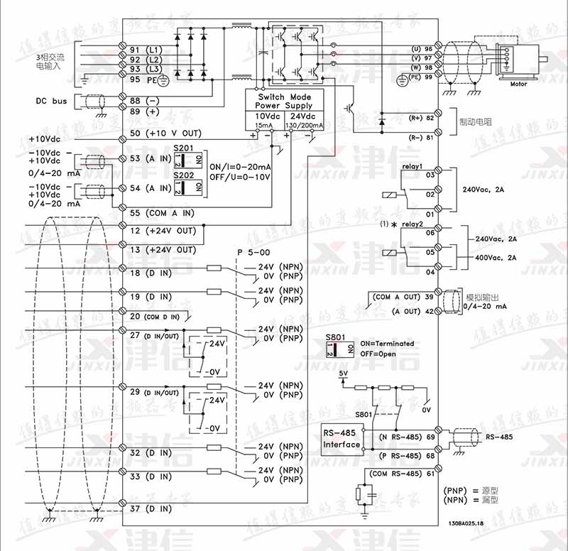 丹佛斯FC302變頻器的標(biāo)準(zhǔn)接線圖如下: