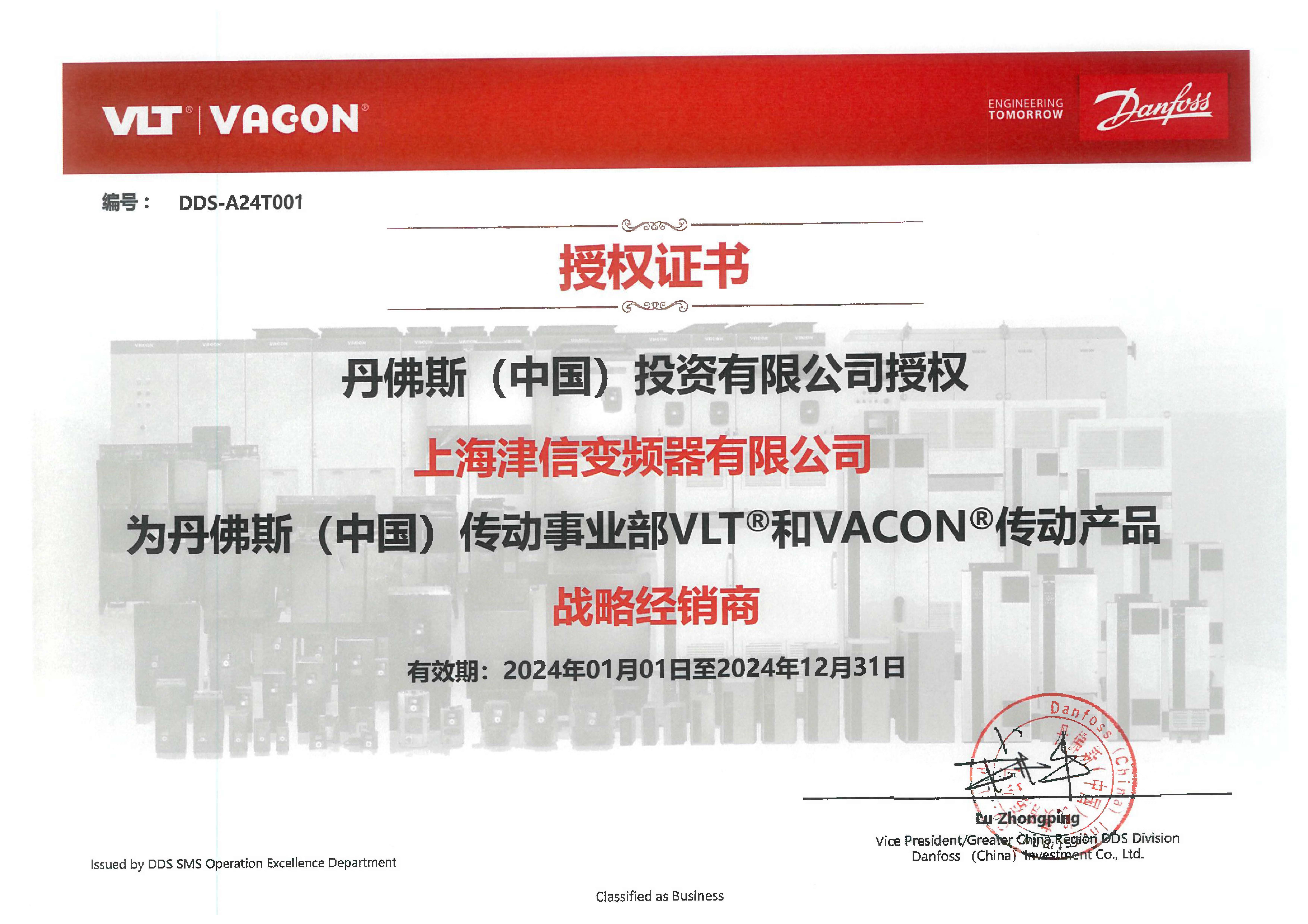 丹佛斯戰(zhàn)略經銷商證書