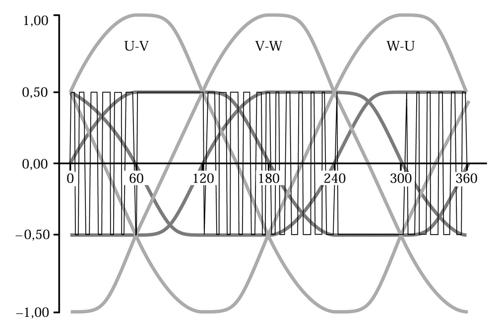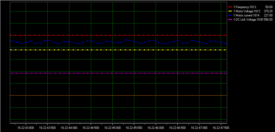 對(duì)以上參數(shù)進(jìn)行調(diào)整后,客戶描述的現(xiàn)象(電機(jī)的震動(dòng)和噪音)明顯得到解決,以下為變頻器經(jīng)過(guò)調(diào)整過(guò)后的電機(jī)波形和音頻文件