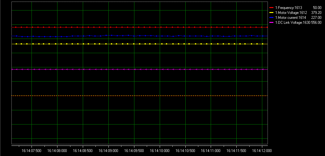 通過(guò)對(duì)上述文件、變頻器參數(shù)設(shè)置以及現(xiàn)場(chǎng)情況進(jìn)行分析,我們可以看到電機(jī)的電流變化和震蕩比較大,進(jìn)行現(xiàn)場(chǎng)長(zhǎng)時(shí)間的測(cè)試,我們最終得出是變頻器的開關(guān)頻率模式以及開關(guān)頻率高低導(dǎo)致,相關(guān)參數(shù)為: