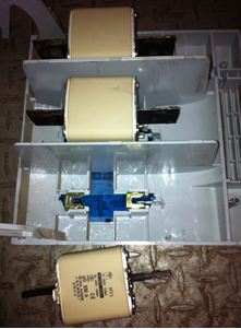 上圖為客戶現(xiàn)場使用的保險絲,為普通的保險絲。根據丹佛斯VLT軟啟動器MCD500操作手冊(MG.17.K2.41)P23頁上說明,軟起動器的主回路器件是可控硅,由于可控硅無自關斷能力,因此在發(fā)生短路的時候無法靠電子線路快速響應關斷的辦法進行短路保護,必須采用半導體器件保護用快速熔斷器進行短路保護。顯然使用該保險絲不符合丹佛斯軟啟動器的要求。