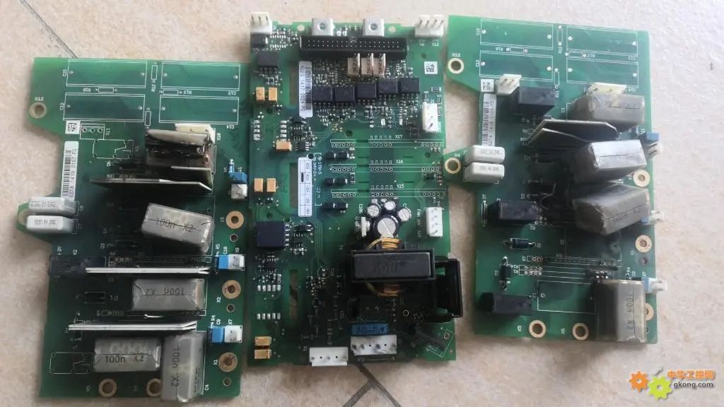 Vacon的變頻器電路設(shè)計(jì)精致,配合采用英飛凌的壓接式IGBT模塊,要是發(fā)生了高壓打火,后果真的很?chē)?yán)重。一番拆解下來(lái),情況是這樣:進(jìn)線(xiàn)整流觸發(fā)板夾層炸裂,電源板夾層炸裂,IGBT下橋的觸發(fā)足打火,模塊報(bào)廢,進(jìn)線(xiàn)可控硅整流模塊爆開(kāi)。幸運(yùn)的是,風(fēng)機(jī)控制板和主板都沒(méi)事,主板有光耦隔離,可以理解;風(fēng)機(jī)板和電源板同用一個(gè)母線(xiàn)電源,風(fēng)機(jī)電源居然一點(diǎn)事都沒(méi)有。