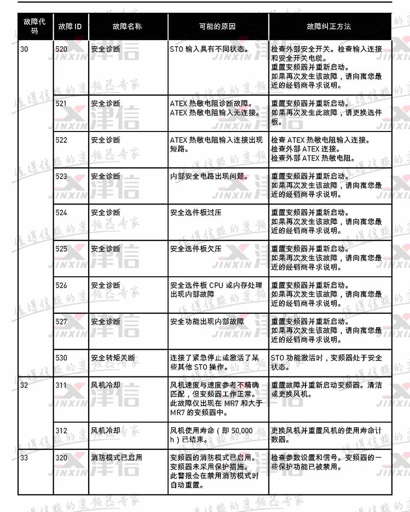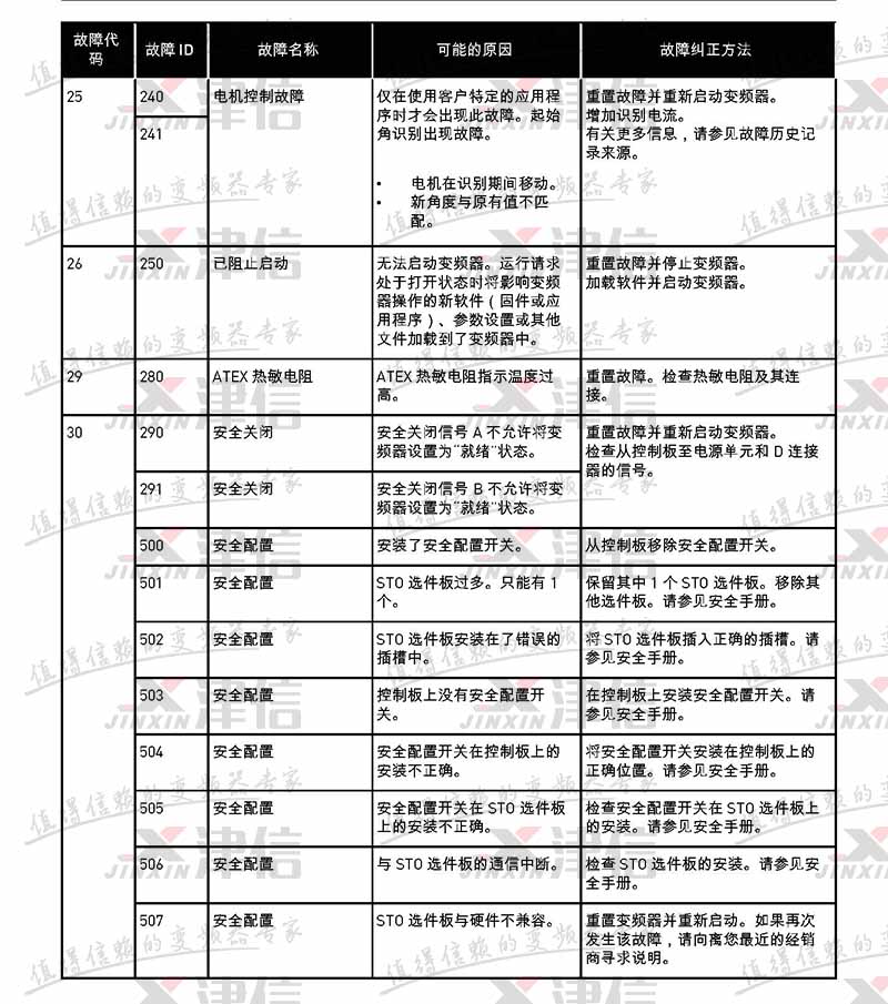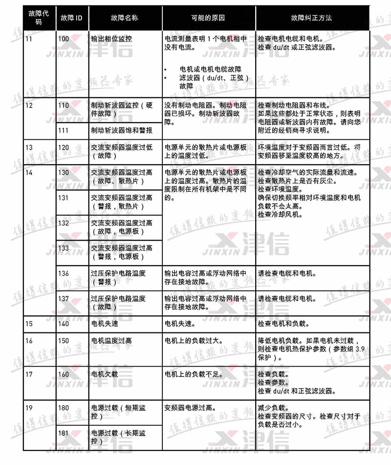 | 故障代碼 | 故障 ID | 故障名稱 | 可能的原因 | 故障糾正方法 |