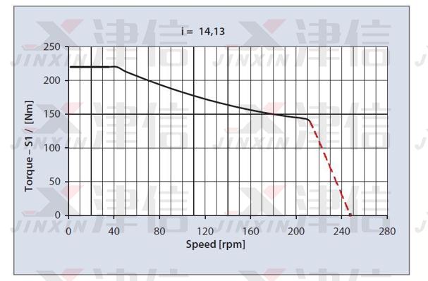 參考OGD電機選型樣本,OGDSK214K13電機的轉(zhuǎn)速-轉(zhuǎn)矩特性如下: