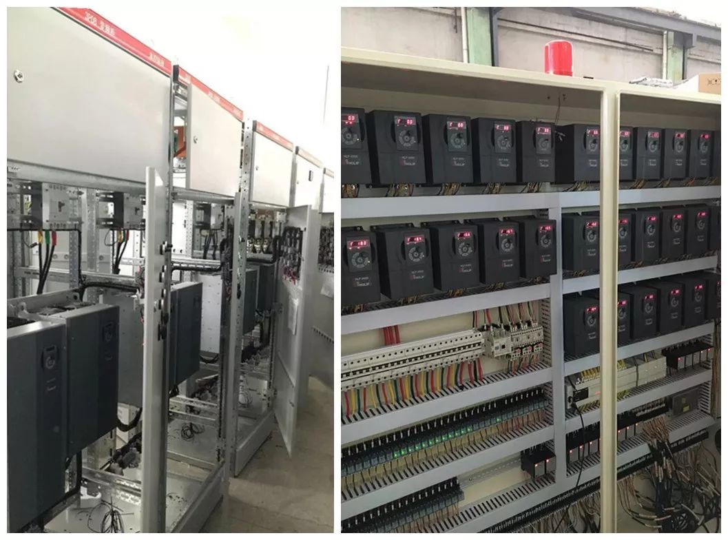 外加空壓機(jī)、羅茨風(fēng)機(jī)等。整線配備電機(jī)200余套,裝機(jī)容量超過(guò)1600 kW,可見(jiàn)變頻器在節(jié)能上大有作為。