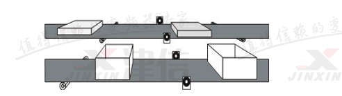 如上圖所示,即使兩條輸送帶同步運(yùn)行,蓋子仍舊無(wú)法在正確的時(shí)間與盒子對(duì)齊,使用SYNCM指令時(shí),可通過(guò)外部標(biāo)記對(duì)主機(jī)與從機(jī)之間的位置偏差進(jìn)行檢測(cè),并對(duì)可能出現(xiàn)的位置偏差進(jìn)行修正。